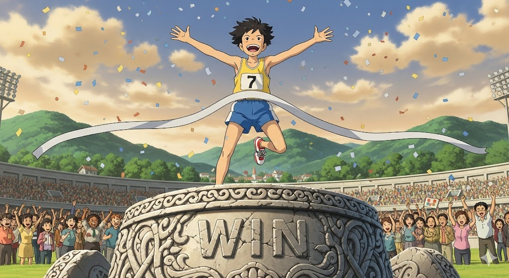 - (명사) 승리, 우승: 경기나 경쟁에서 이기는 것.