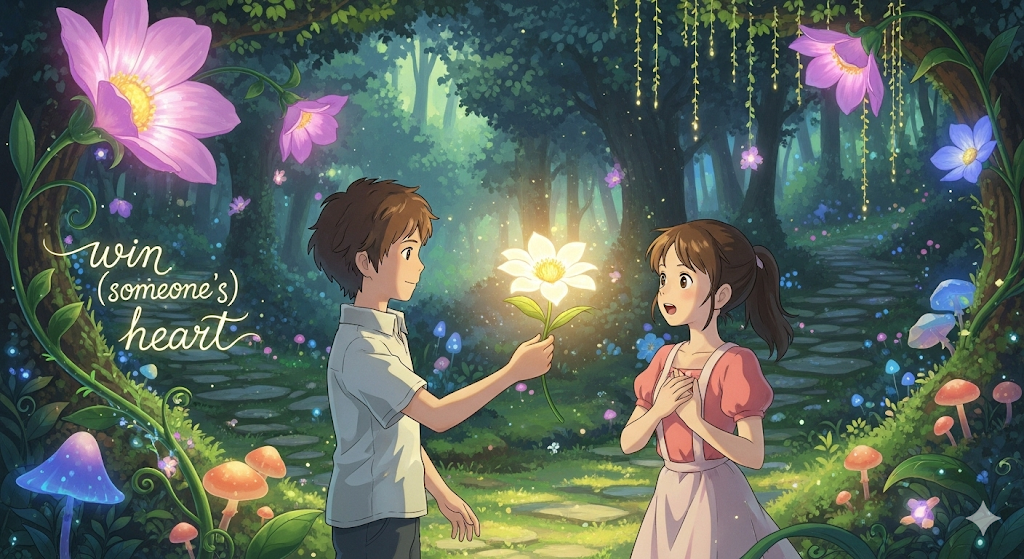 - (그는 진심으로 그녀의 마음을 얻었다.)