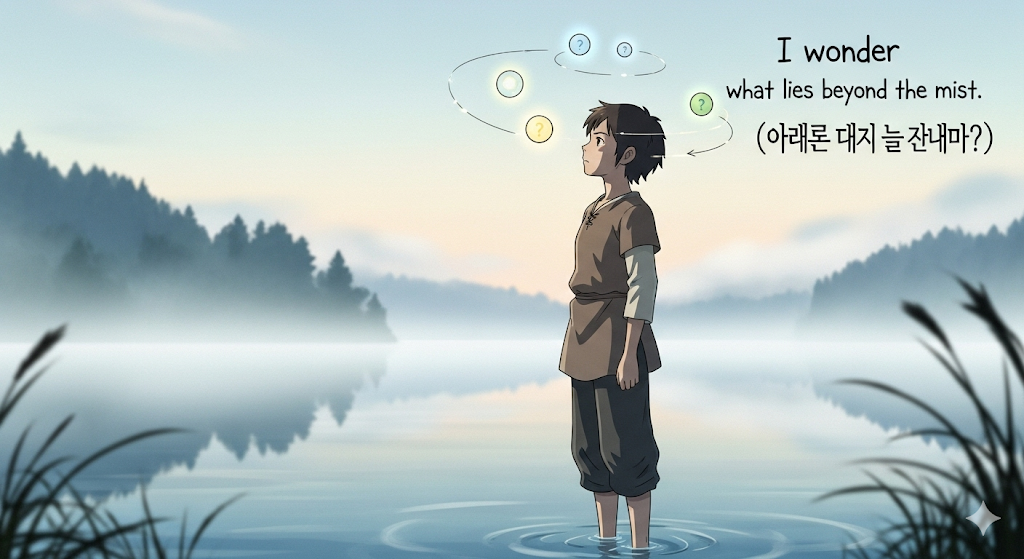 | wonder | 궁금해하다, 생각하다 | 동사로, '강하게' '드러나는' '마음속' '의' '질문'. | 명시된 '질문' '이' '지속적' '이고' '강렬함' '을' 구체화. |