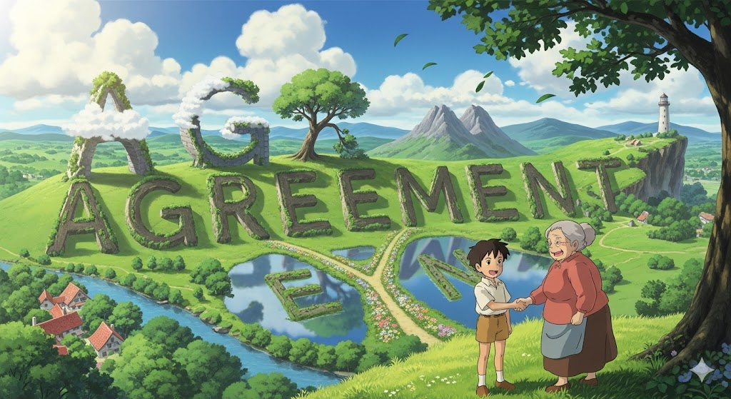 - *'agreement'**는 명사일 때 **'둘 이상의 주체가 어떤 사안에 대해 같은 의견을 갖거나, 특정 조건에 대해 서로 받아들이는 상태'**라는 핵심 뉘앙스를 가집니다. 이는 **'간단한 의견의 일치'**부터 **'법적인 구속력을 가지는 공식적인 계약, 또는 개념들 사이의 조화'**까지 포함하여 **'일치, 약속, 그리고 조화'**의 의미를 포괄하는 단어입니다.