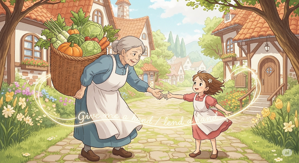 - 예문: Can you give me a hand with my homework? (내 숙제 좀 도와줄 수 있어?)