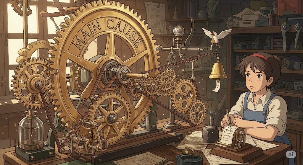 '어떤' '결과'(result), '현상'(phenomenon), 또는 '변화'(change)가 '발생'(happen)하도록 '이끄는'(lead to) '행위'(action), '상태'(condition), 또는 '요인'(factor)을 의미합니다. 단순히 '이유'(reason)를 넘어, '사건'(event)의 '발생'(occurrence)에 '직접적으로'(directly) '영향'(impact)을 미치는 '근원'(origin)을 강조합니다.