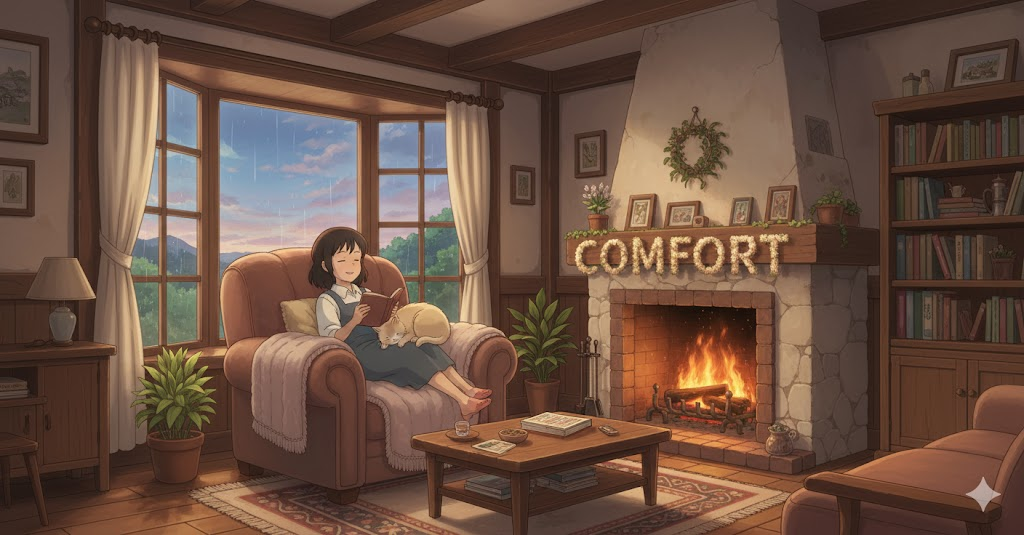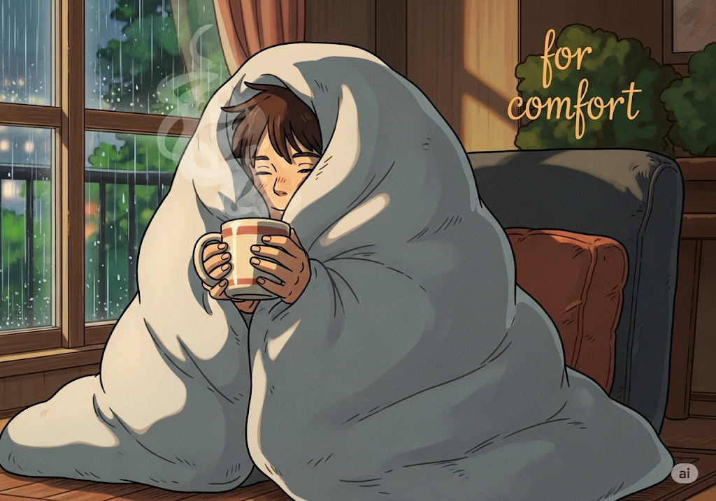- *'for comfort'**는 힘든 시기에 스스로를 돌보고 마음을 안정시키려는 목적을 설명할 때 사용됩니다. 이는 담요를 덮거나 좋아하는 음식을 먹는 등, 신체적 또는 정신적으로 편안함을 주는 모든 행위를 포함할 수 있습니다.