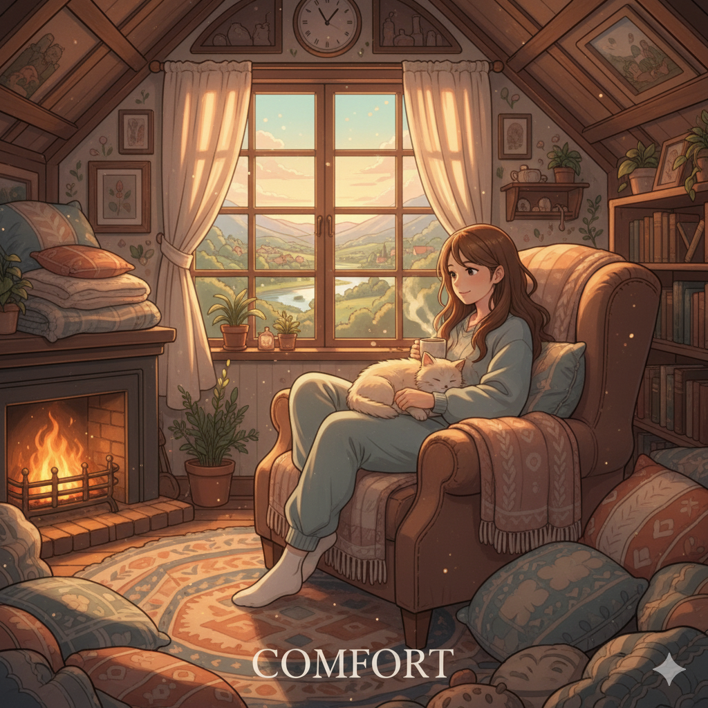 - *‘comfort’**는 신체적 또는 정신적인 편안함, 안락함이거나, 어려운 상황에서의 위로, 위안을 의미하며, 동사로는 슬프거나 걱정하는 사람을 위로하고 안심시키는 것을 나타냅니다.
