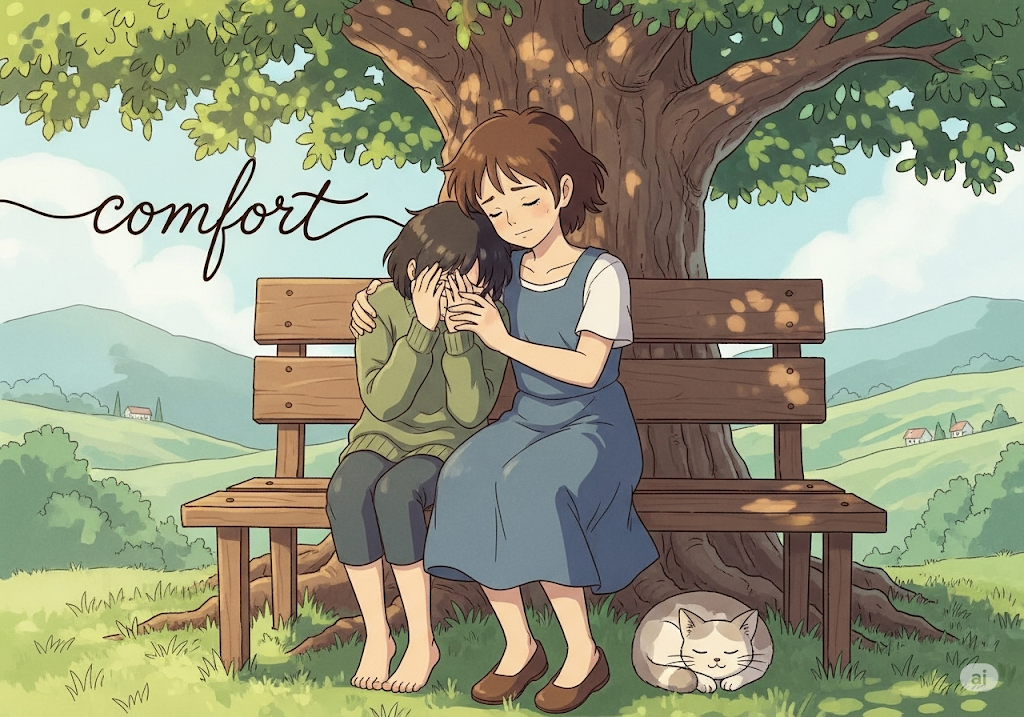 - *'comfort someone'**은 상대방의 슬픔이나 고통을 공감하고, 그 감정을 덜어주기 위해 노력하는 따뜻하고 인간적인 행위를 나타냅니다. 이는 진심 어린 말 한마디, 따뜻한 포옹, 또는 조용히 옆에 있어주는 것 등 다양한 형태로 표현될 수 있습니다.