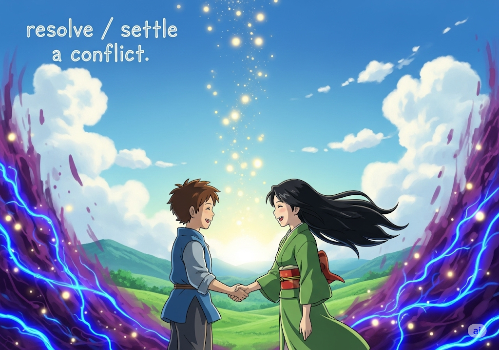 - resolve/settle a conflict