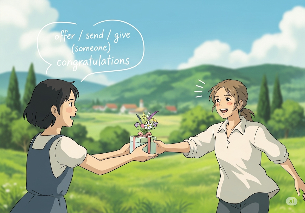 - 뜻: ~에게 축하를 건네다/보내다/하다