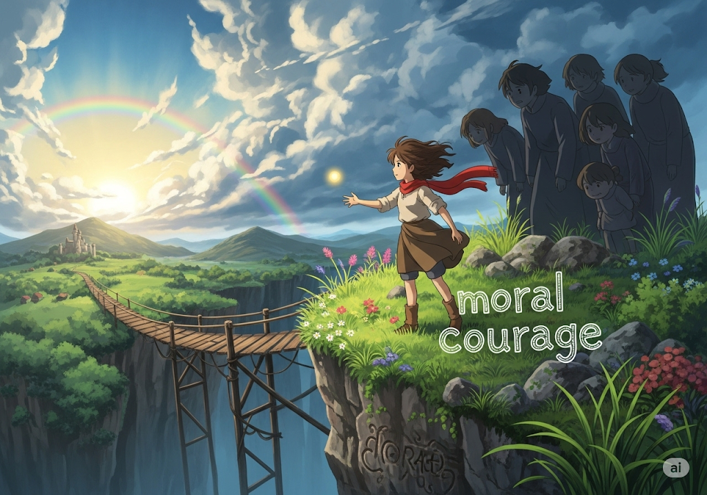 moral courage: 도덕적 용기. 다수의 의견이나 사회적 압력에 맞서 자신의 양심과 도덕적 신념을 지키는 용기를 의미합니다.