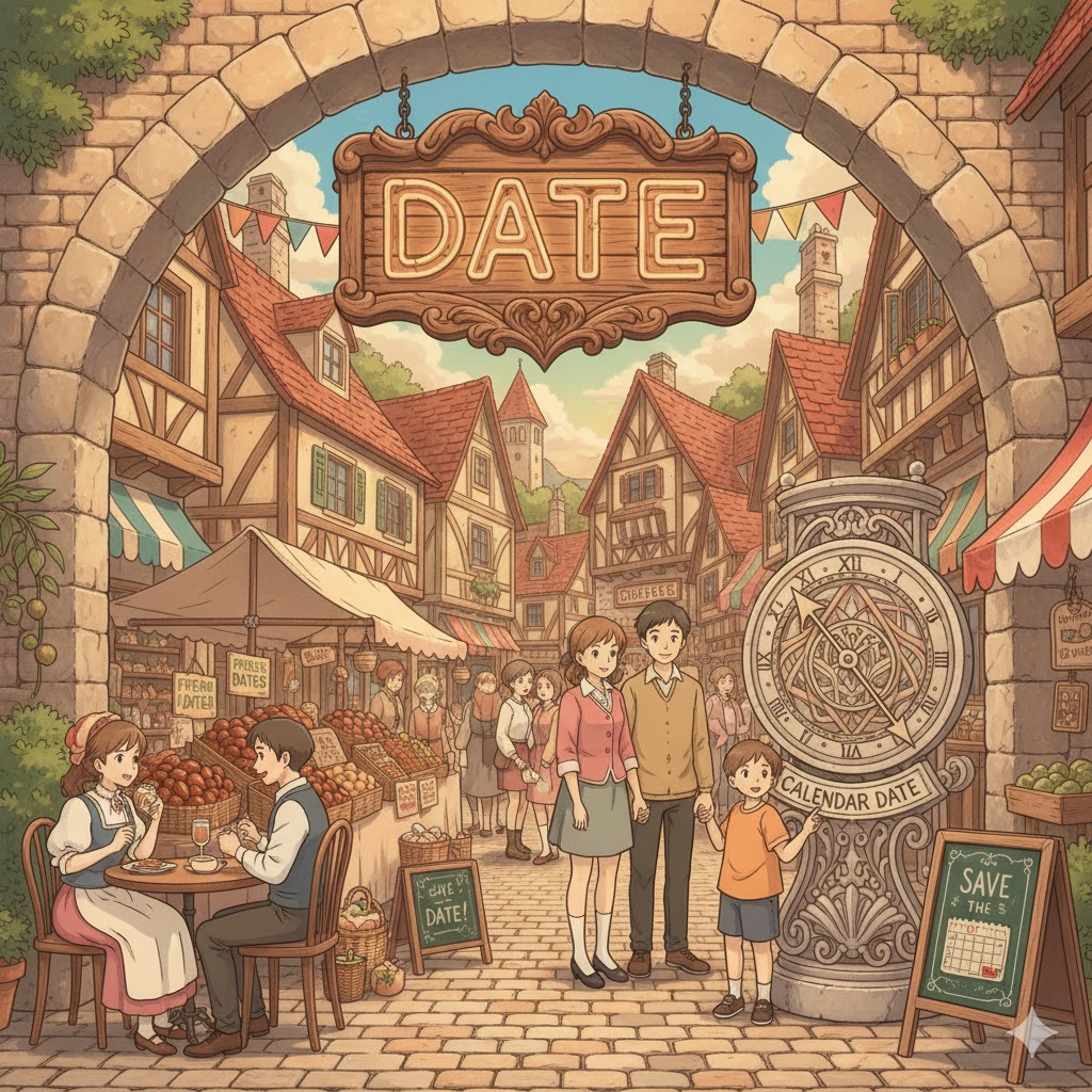 - *'date'**는 명사일 때 **'시간의 특정 지점이나 특별한 만남'**이라는 핵심 뉘앙스를 가집니다. 이는 **'달력상의 특정 날'**을 의미할 수도 있고, **'두 사람의 로맨틱한 약속'**을 의미할 수도 있습니다. 놀랍게도 **'과일 대추야자'**도 같은 단어를 씁니다. 동사일 때는 '날짜를 기록하거나 정하는 행위', '연인 관계를 맺는 행위', '시대에 뒤떨어지게 만드는 행위', 또는 '기원이 특정 시점까지 거슬러 올라가는 행위' 등 다양한 시간 관련 의미를 가집니다. 핵심적으로 **'시간, 만남, 그리고 시간적 변화'**를 나타내는 다의어입니다.