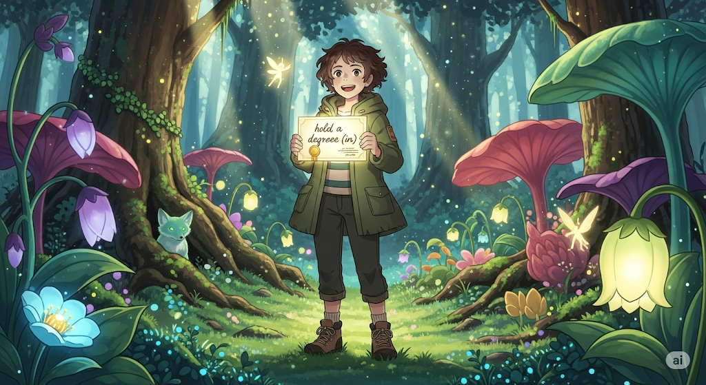 - 뜻: (전공 분야의) 학위를 가지다