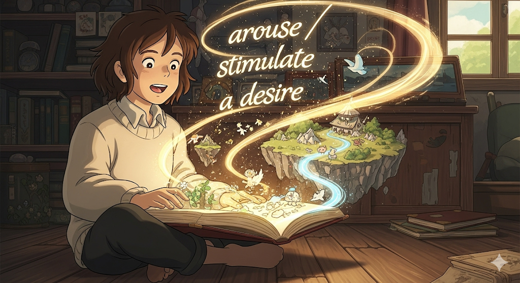 - 뜻: 욕구/열망을 불러일으키다, 자극하다
