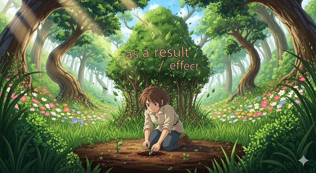 '이전에 발생한' 사건(event)이나 '행동'의 '직접적인 결과'(result or effect)로서 '뒤따라 발생하는 상황'을 도입할 때 사용되는 표현입니다. 이는 '명확한 **인과관계'**를 강조합니다.