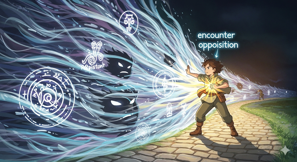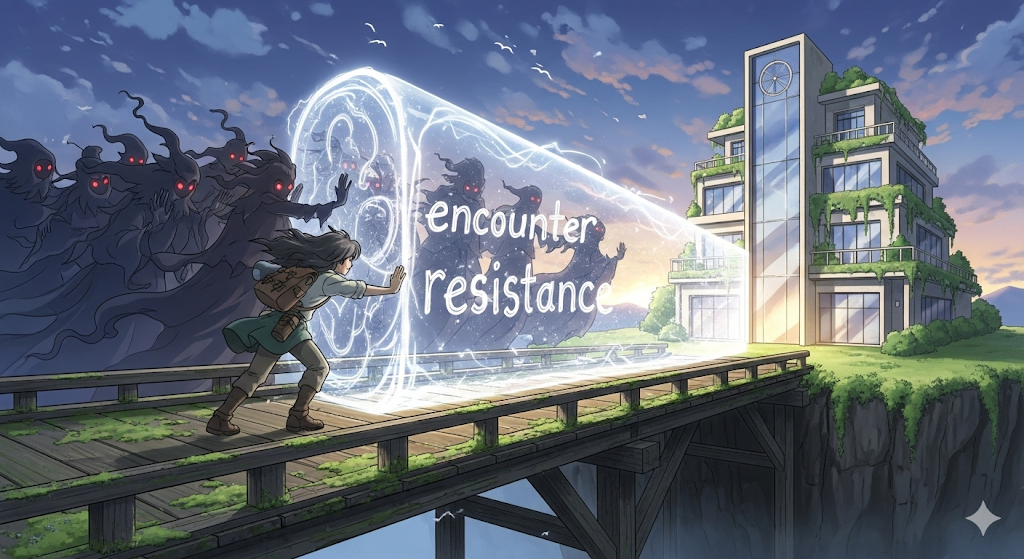 - 해석: 저항에 부딪히다