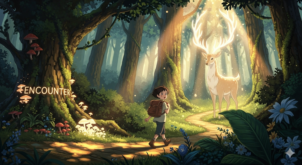 - The story describes the hero's unexpected encounter with a magical creature in the forest. (그 이야기는 숲에서의 영웅의 예상치 못한 만남을 묘사한다.)