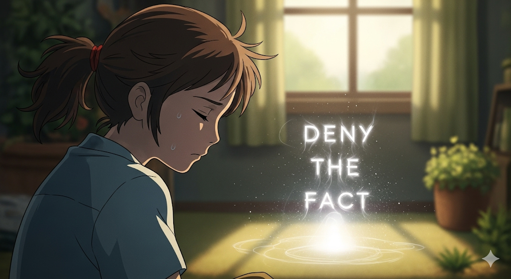 사실을 부정하다. 실제로 존재하는 사실을 인정하지 않으려고 하는 것.