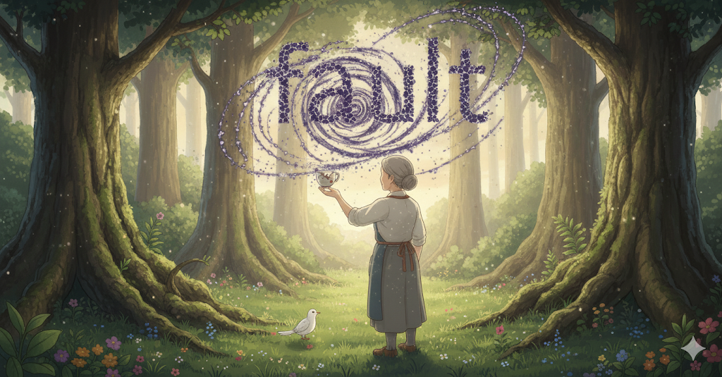 라틴어 fallere ("속이다, 실패하다")에서 유래 → 구 프랑스어 faute ("결점, 부족, 실패")를 거쳐 영어로 유입 → 즉, 원래 **'실수나 부족으로 인한 실패'**를 의미했음 → 이 의미가 현대 영어에서 '책임이 있는 실수나 과실' (잘못, 과실) 명사로 굳어졌어요. 나아가 '사람이나 사물의 약점' (결점, 단점)의 의미를 가지게 되었고, 지리학에서는 '지각의 깨진 부분' (단층)으로 확장되었어요. 동사로는 '잘못이 있다고 비난하는 행위' (나무라다, 비난하다)로 사용됩니다. 즉, **'실수, 결함, 또는 그로 인한 책임'**을 나타내는 핵심 단어예요.