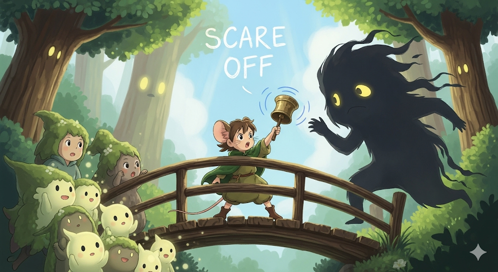 - (큰 소리가 정원의 새들을 쫓아냈다.)