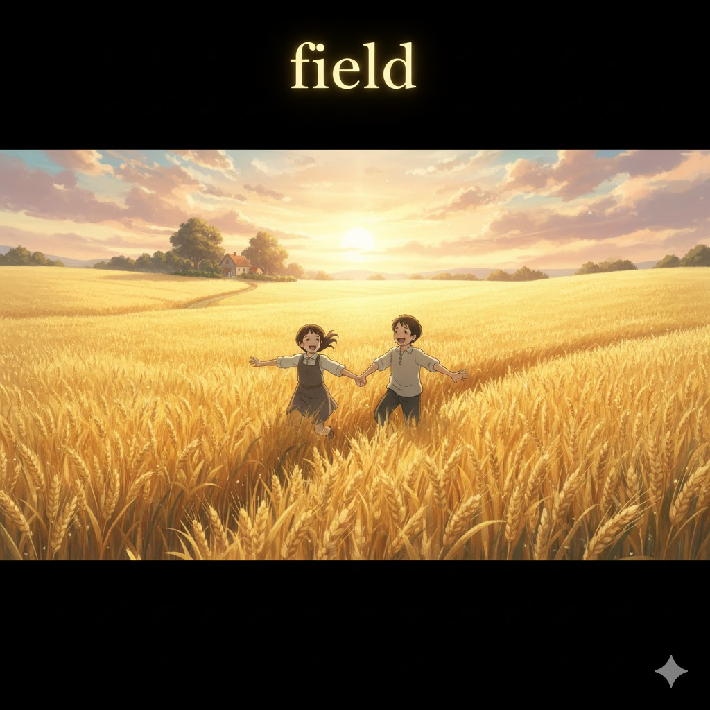 | 명사 | 들판, 밭 | The cows are grazing in the field. | 소들이 들판에서 풀을 뜯고 있어. |