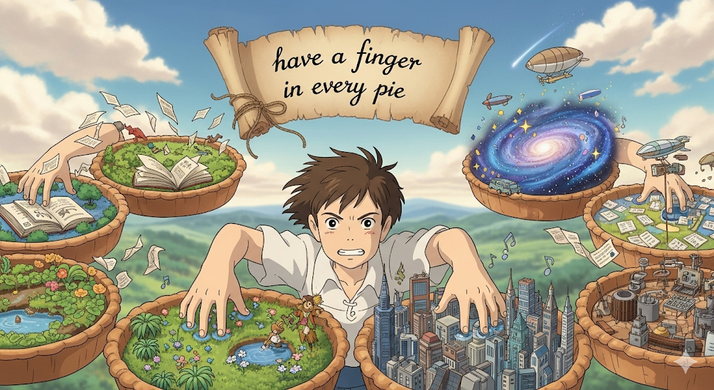 - 해석: 여기저기 관여하다, 여러 일에 손을 대다