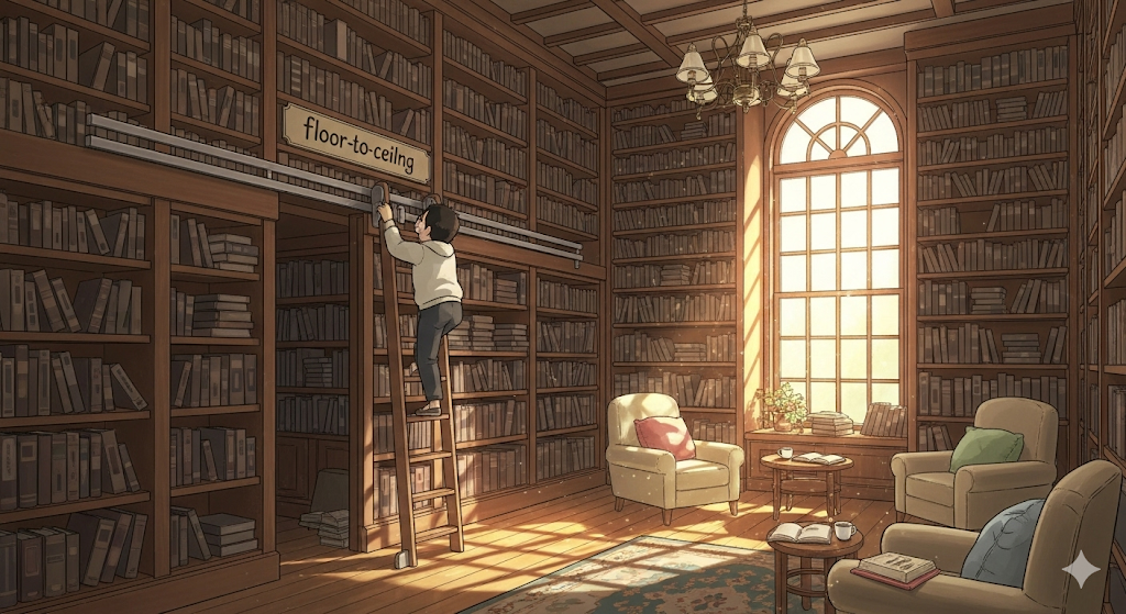 벽이나 창문이 '바닥(floor)에서부터 천장(ceiling)까지' '전체 높이'(height)를 모두 차지하는 것을 의미합니다. 이는 '공간의 **극대화'**와 '크기(size)의 **웅장함'**을 강조하는 시각적(visual) 효과를 나타냅니다.