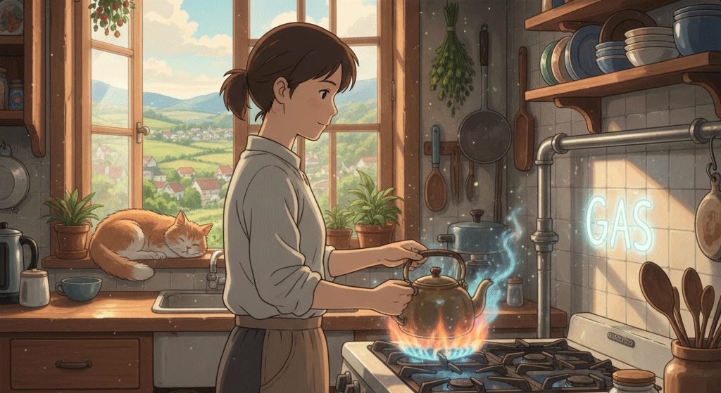 - 부엌에서 강한 가스 냄새가 났어.