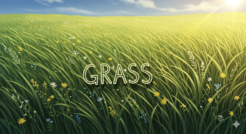 - *‘grass’**는 땅을 덮고 자라는 흔한 녹색 식물인 잔디, 풀이거나, 풀이 자라 소, 양 등이 풀을 뜯어먹는 넓은 땅인 목초지이거나, 대마초를 지칭하는 속어인 **마리화나(명사)**를 의미합니다.