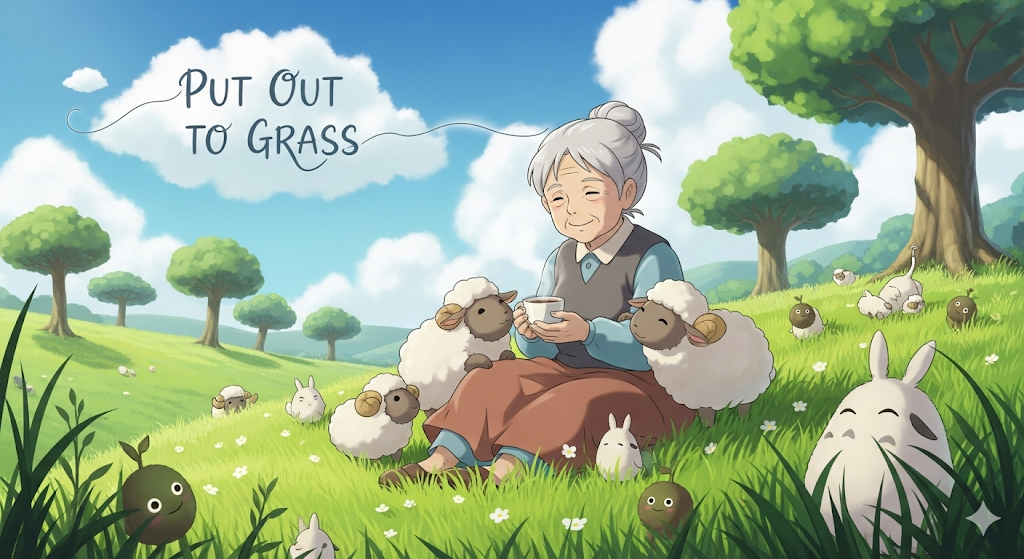 put (someone) out to grass [pʊt ˈsʌmwʌn aʊt tuː ɡræs]