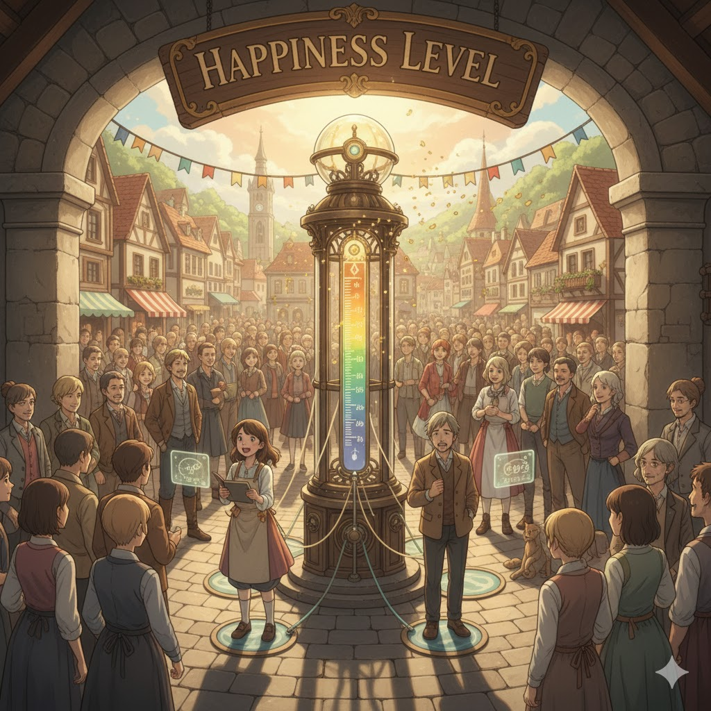 행복의 본질과 측정. 만족감, 기쁨의 정도, 그리고 그것을 수치화하는 개념.