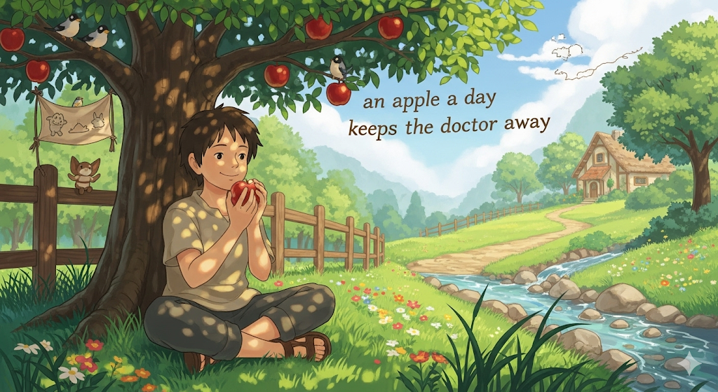 - 해석: 하루에 사과 하나면 의사를 멀리할 수 있다 (건강 관리가 중요함)