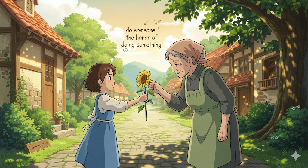 상대방(someone)이 '특별히 정중하고 영광스러운' 행동을 해주도록 허락(allow)하거나 청하는 행위를 의미합니다. '상대방의 지위(status)나 호의(favor)에 대한 높은 존경(respect)을 표현하는 격식적인 **표현'**에 초점이 맞추어져 있습니다.