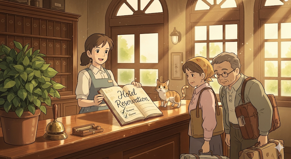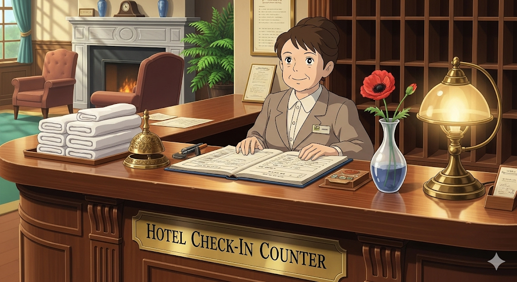 - 해석: 호텔 체크인 카운터