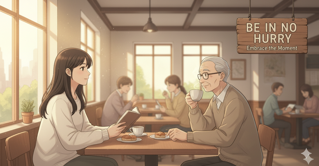- 해석: 급할 것 없이, 서두르지 않다