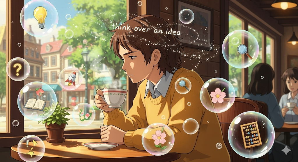 - 해석: 아이디어를 곰곰이 생각하다, 숙고하다