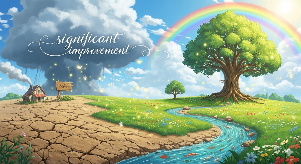 **'매우 크고 중요하여(major), 결과(consequence)나 가치(value)에 중대한 영향(impact)을 미치는 수준의 향상(improvement)'**을 의미합니다. '눈에 띄는 개선(noticeable improvement)'보다 **'더 크고, 더 깊고, 더 의미 있는 변화'**에 초점이 맞추어져 있습니다.