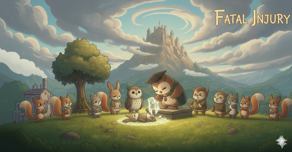 **결국에는 사망(death)을 초래하는 심각한 부상(serious injury)**을 의미합니다. **'생존(survival)이 불가능한 수준의 신체적 손상'**이라는 극도로 부정적인 뉘앙스가 핵심이며, 이는 종종 **'사망의 직접적인 원인(cause)'**이 됩니다.