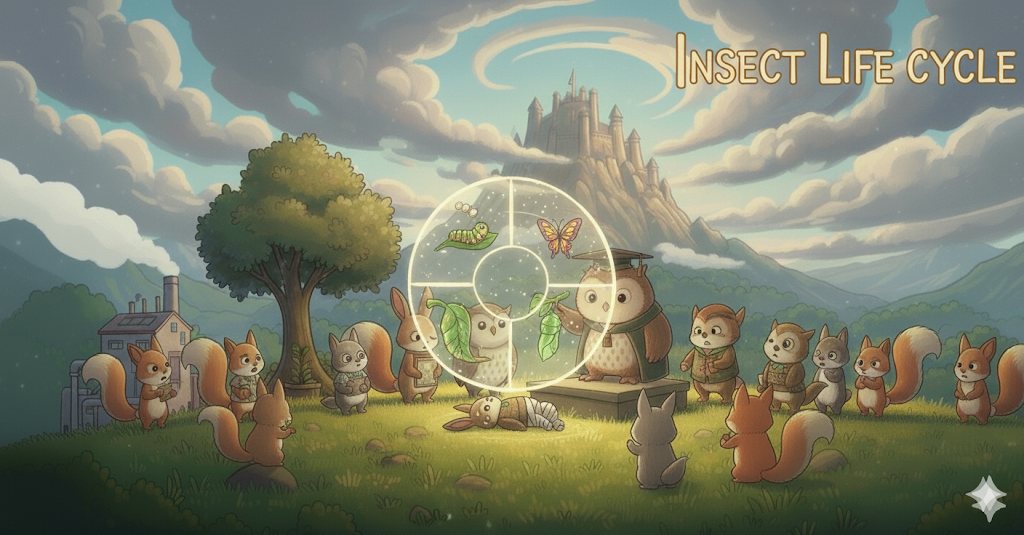 - 해석: 곤충이 알에서 성충이 되기까지 거치는 일련의 발달 단계 (예: 완전 변태, 불완전 변태).
