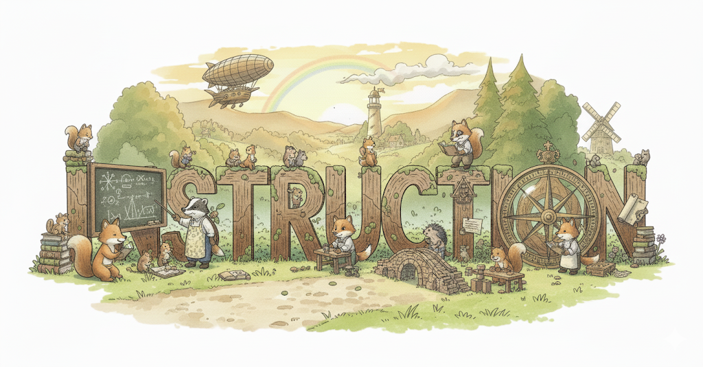 라틴어 instructio ("건설, 준비, 배열; 교육")에서 유래 → 'instruere' (건설하다, 준비하다, 가르치다)에서 파생 → 즉, 원래 **'무언가를 준비하거나 체계적으로 쌓아 올리는 행위'**를 의미했음 → 이 의미가 현대 영어에서 '무엇을 어떻게 해야 할지 알려주는 구체적인 지시나 명령' (지시, 명령) 명사로 굳어졌어요. 나아가 이러한 '체계적으로 알려주는 행위'라는 개념이 확장되어 '지식이나 기술을 가르치는 행위; 또는 가르침을 통해 얻는 것' (교육, 지도)을 뜻하게 되었고, 구체적으로 '기기 등을 사용하거나 조립하는 방법을 설명하는 문서' (사용 설명서)를 지칭하기도 합니다. 즉, **'체계적으로 방향을 제시하거나 지식을 전달하는 행위 또는 그 내용물'**을 나타내는 핵심 다의어예요.