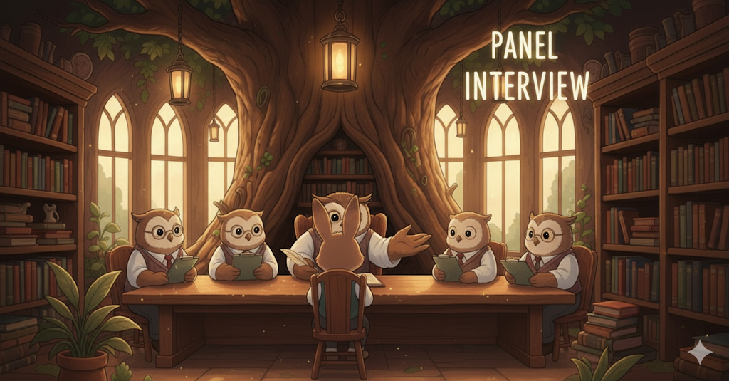 - 해석: 여러 명의 면접관(패널)이 한 명의 지원자를 동시에 인터뷰하는 형식.