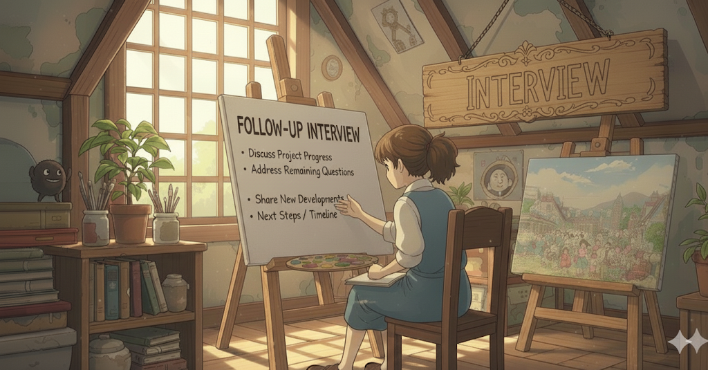 - 해석: 1차 면접 후, 특정 질문에 대해 더 깊이 다루거나 추가 정보를 얻기 위해 진행하는 다음 단계의 면접.