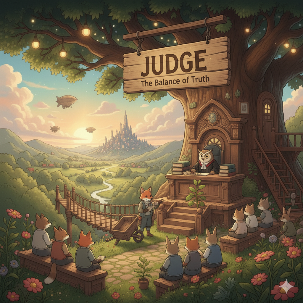 라틴어 iudicare ("판단하다, 재판하다")에서 유래 → 구 프랑스어 juge를 거쳐 영어로 유입 → 즉, 원래 **'법률에 따라 옳고 그름을 결정하는 사람'**을 의미했음 → 이 의미가 현대 영어에서 '법정에서 법률을 적용하여 판결을 내리는 사람' (판사, 재판관) 명사로 굳어졌어요. 나아가 이러한 '판단과 평가'의 개념이 확장되어 '경쟁이나 대회에서 평가를 내리는 사람' (심사위원, 심판)을 뜻하게 되었고, 동사로는 '어떤 것에 대해 의견을 형성하거나 가치를 매기는 행위' (판단하다, 평가하다)와 '법적 판결을 내리는 행위' (재판하다, 판결하다)를 나타냅니다. 즉, **'결정적인 판단이나 평가를 내리는 사람 또는 그 행위'**를 나타내는 핵심 다의어예요.