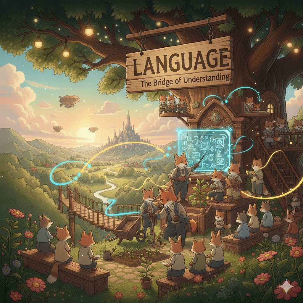 - *'language' 는 명사로서 '인간이 생각, 감정, 정보를 전달하기 위해 사용하는 체계적인 기호나 규칙의 시스템' 이라는 핵심 뉘앙스를 가집니다. 이는 구어로 사용하는 자연어(예: 한국어, 영어)일 수도 있고, 몸짓(바디 랭귀지), 컴퓨터 코드, 또는 특정 직업군의 전문 용어처럼 비구술적이거나 한정된 시스템일 수도 있습니다. 핵심적으로 '의사소통과 표현의 수단' 을 포괄하는 단어예요.