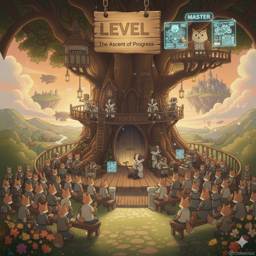 개인의 능력, 지위, 또는 어떤 것의 품질을 이전보다 더 높은 수준(level)으로 끌어올리는 행위를 의미합니다. 비디오 게임에서 **'경험치를 쌓아 더 높은 단계로 나아가는 것'**에서 유래했으며, **'발전(improvement)을 통해 능력이 향상되는 것'**에 초점이 맞추어져 있습니다.