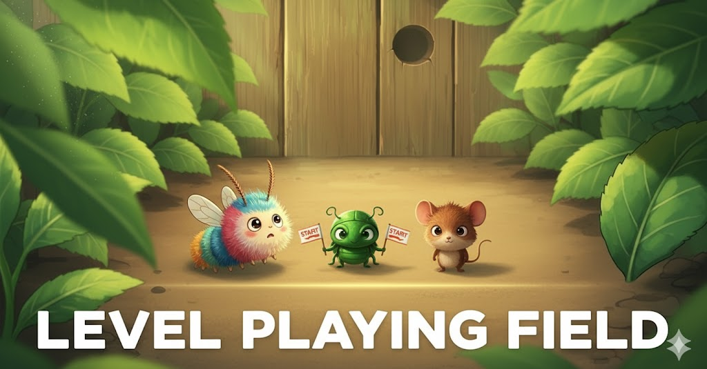 경쟁하는 모든 참가자가 동일하고 공정한 규칙, 조건, 그리고 기회를 가지고 시작하는 상황을 의미합니다. 스포츠의 '평평한 경기장(field)'에서 유래되었으며, **'모두에게 동등한 기회가 주어지는 공정한 환경'**이라는 비유적인 뉘앙스를 강조합니다.