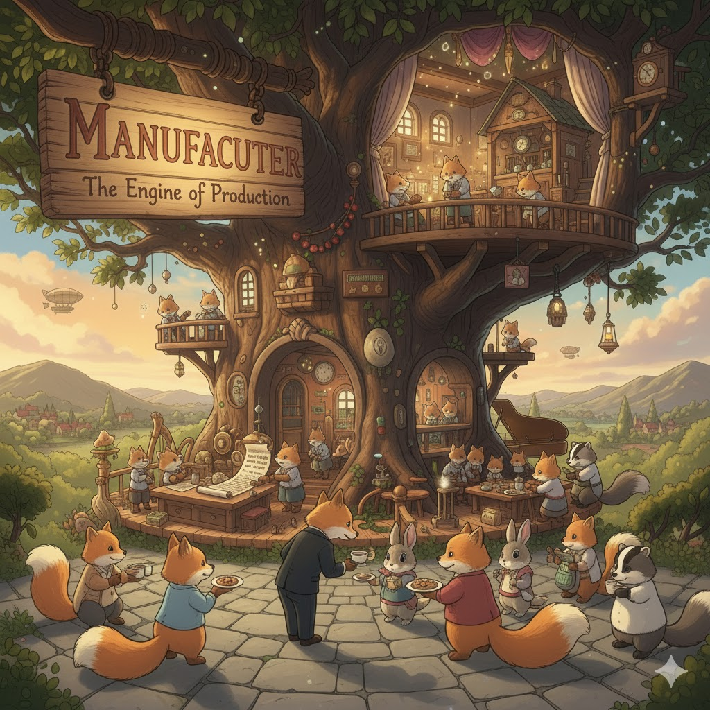 라틴어 manū ("손으로") + facere ("만들다")에서 유래한 manufacture (동사: "손으로 만들다")에 행위자 접미사 -er이 붙어 형성 → 즉, 원래 **'손으로 만드는 사람'**을 의미했음 → 이 의미가 산업 혁명 이후 '기계와 노동력을 사용하여 대량으로 상품을 생산하는 조직' (제조업체, 제작사) 명사로 굳어졌어요. 핵심적으로 **'상품을 생산하는 주체'**를 나타내는 단어예요.