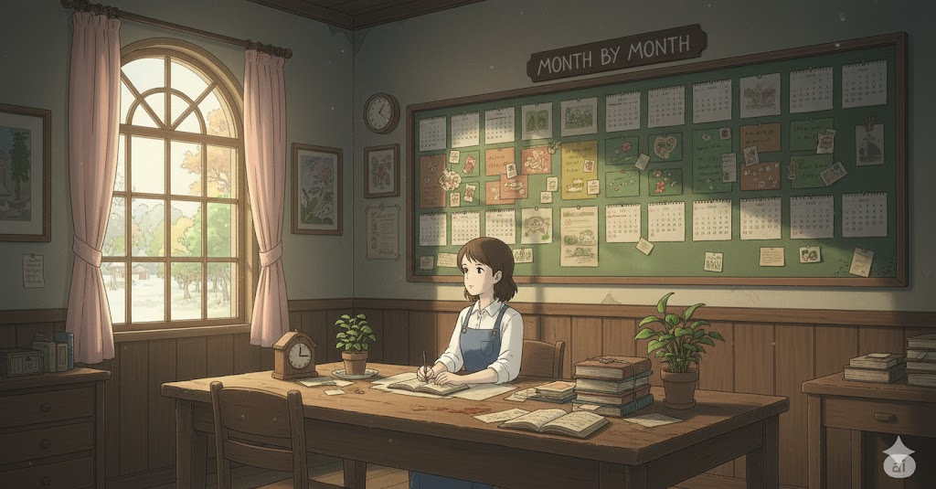'month'는 단기적이고 정기적인(monthly) 계획과 활동을 나타냅니다. 지문은 monthly payment나 month by month처럼 규칙성과 단기적 성과 추적의 중요성을 강조하는 동시에, a month of Sundays처럼 장기적인 관점과의 대비를 통해 시간의 개념을 확장합니다.