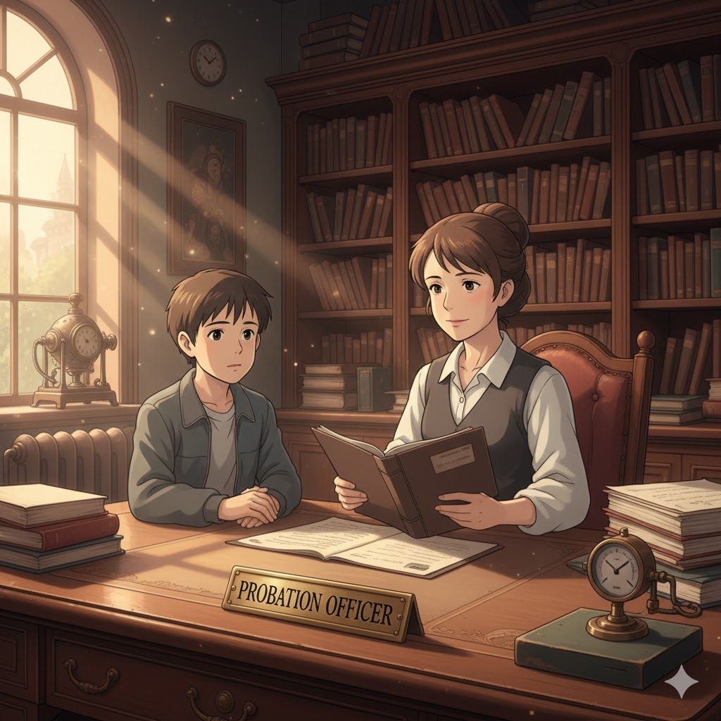 - 해석: 집행 유예나 가석방 상태에 있는 사람들을 감독하고 그들의 사회 복귀를 돕는 공무원.