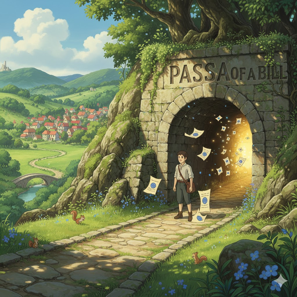 passage of a bill [ˈpæsɪdʒ əv ə bɪl]