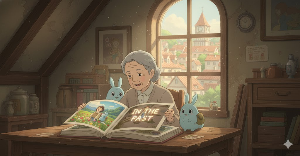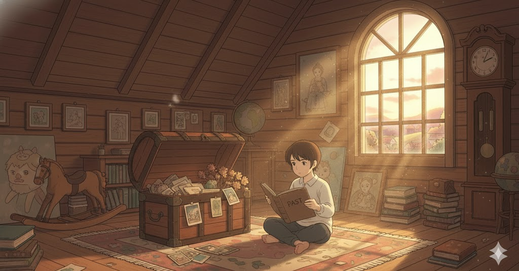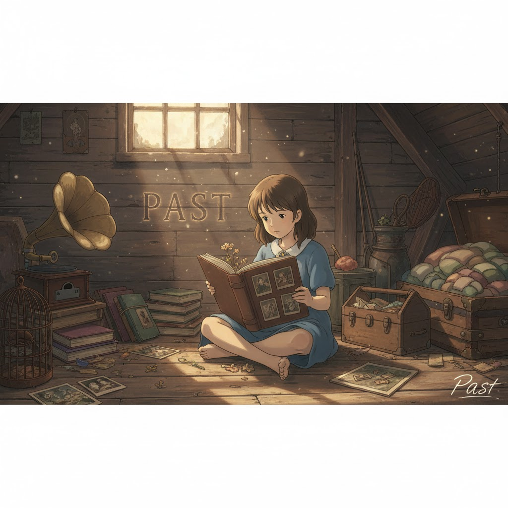 '현재'(present)의 '상황'(situation)이나 '미래'(future) '계획'(plan)에 '집중'(focus)하지 않고, '과거'(past)의 '성공'(success), '실패'(failure), 또는 '영광'을 '지속적'(continue)으로 '회상'(remember)하거나 '그리워하며', '현재'의 '삶'(life)을 '등한시'(neglect)하는 행위를 의미합니다. '정신적'(mental) '정체'(stagnation)를 강조하는 비유적 표현입니다.