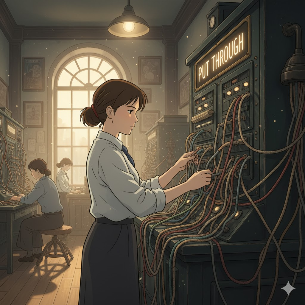 '전화'(phone)를 '거는'(calling) '사람'(person)을 '다른' '사람'(person)이나 '부서'(department)와 '실제로'(actually) '통화'(call)가 '가능하도록'(possible) '연결'(connect)시키는 행위를 의미합니다. '교환원'(operator)이나 '비서'(secretary)의 '역할'(role)을 강조하며, '소통'(communication) '채널' 확보에 초점이 맞춰집니다.