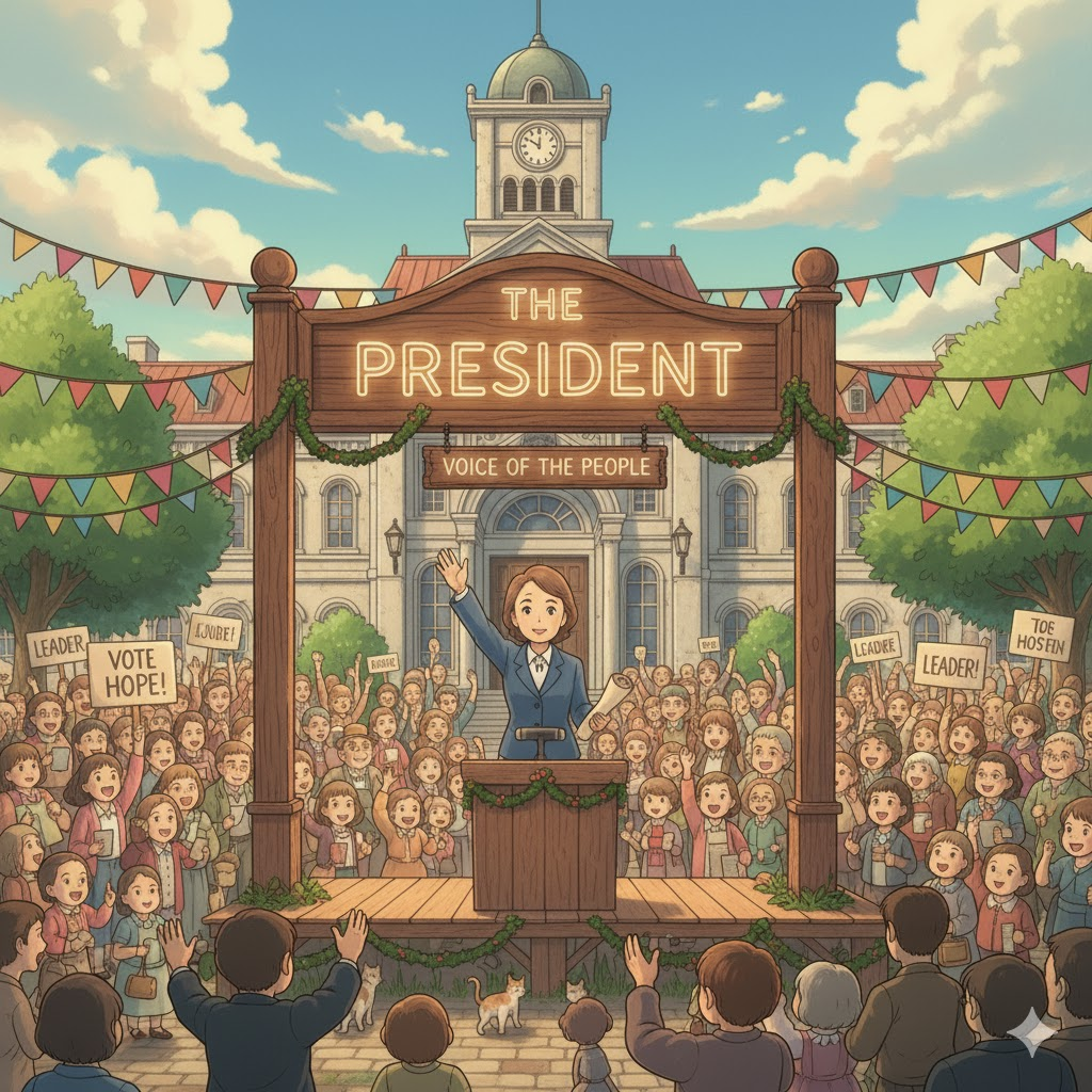 '국가'(nation)의 '최고'(chief) '지도자'(leader)인 '대통령'(president)을 '국민'(people)의 '투표'(vote)를 통해 '선출'(elect)하는 '공식적인'(official) '절차'(process)를 의미합니다. '정치적'(political) '전환'(transition)의 '중요한'(critical) '시기'(period)이며, '여론'(public opinion)과 '경쟁'(competition)이 강조됩니다.